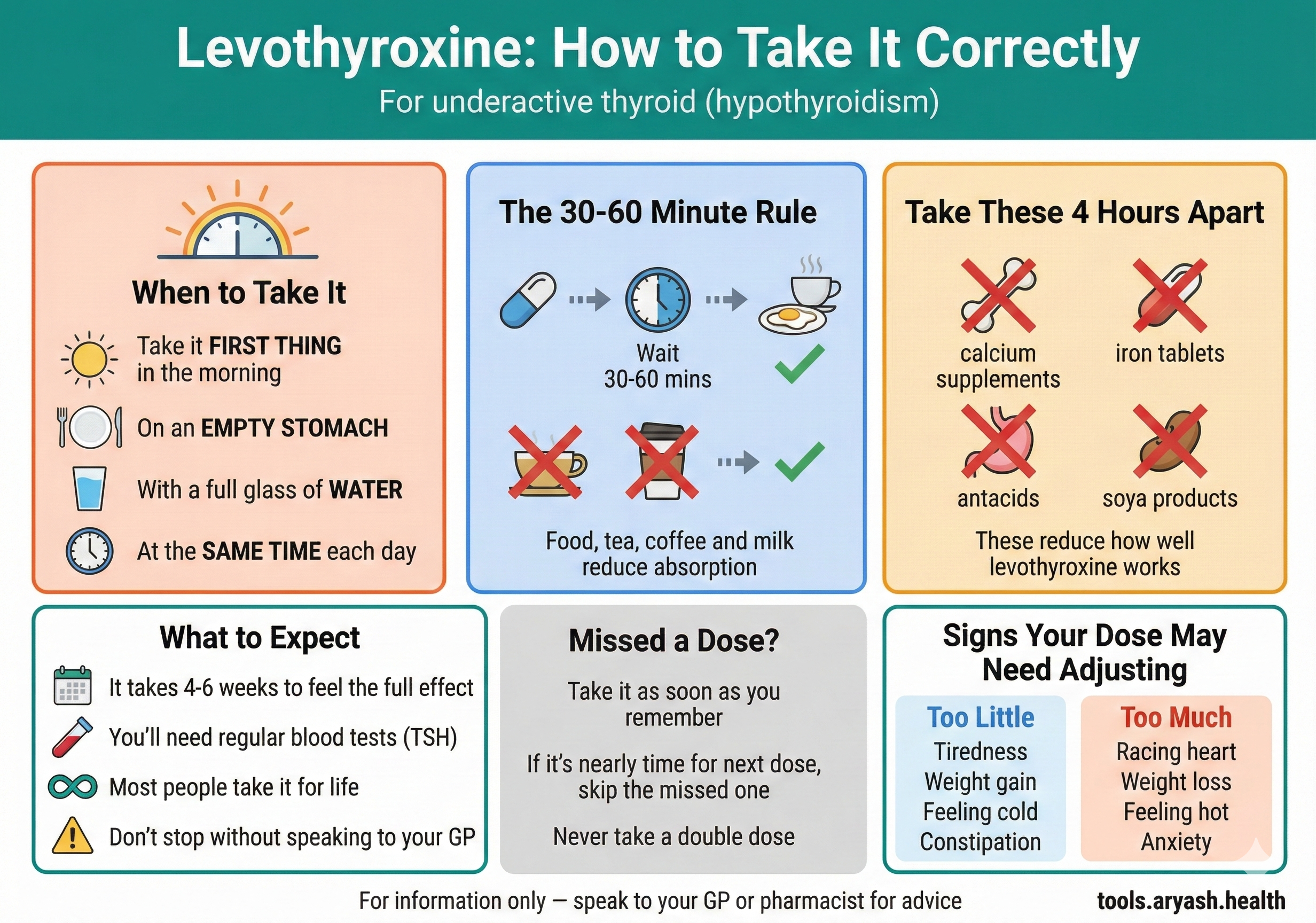 How to take levothyroxine correctly. Timing, food interactions, what to avoid, and signs your dose may need adjusting.