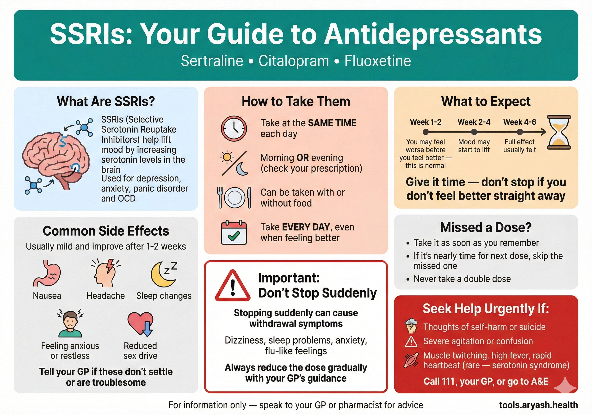 Understanding SSRIs like sertraline. How they work, timeline to effect, common side effects, and safe stopping.